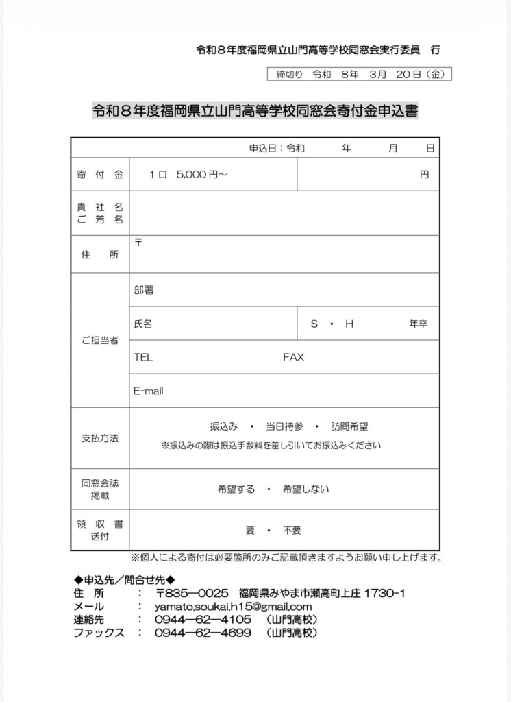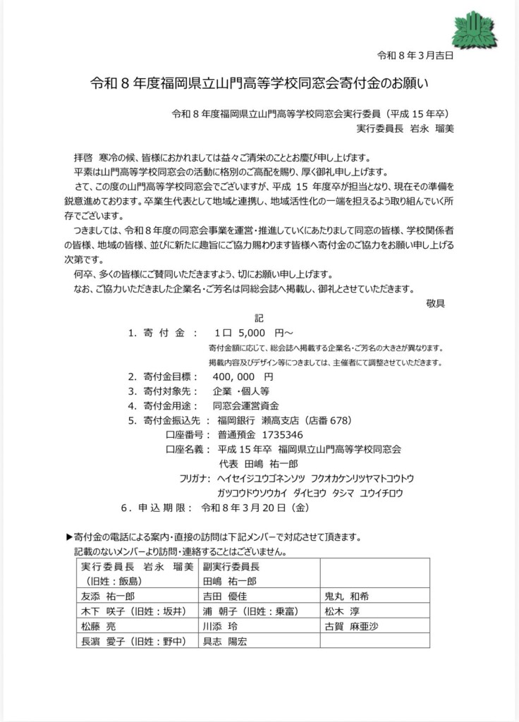 令和8年度福岡県立山門高等学校同窓会実行委員